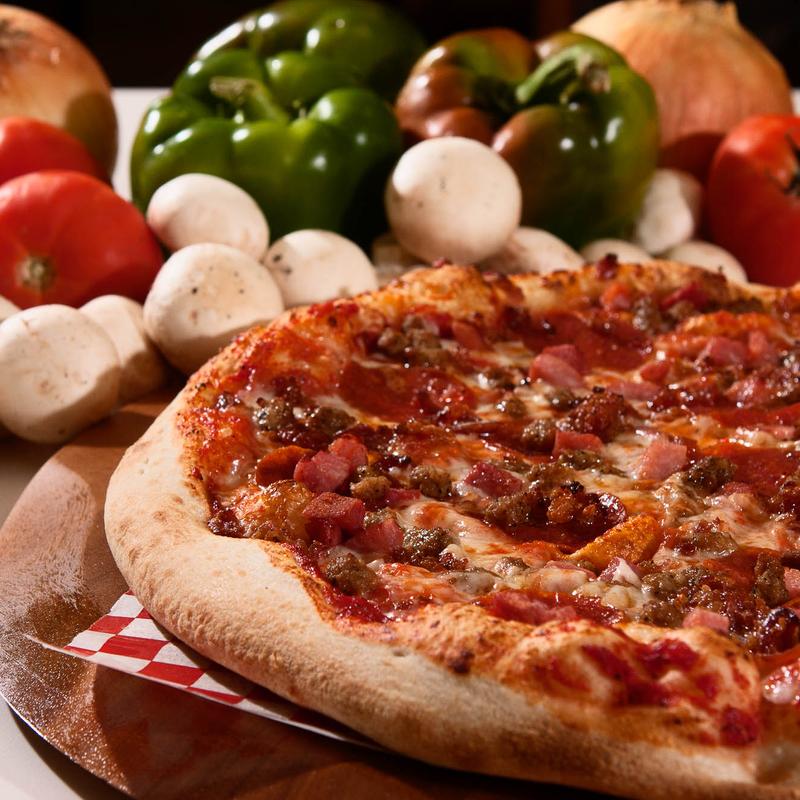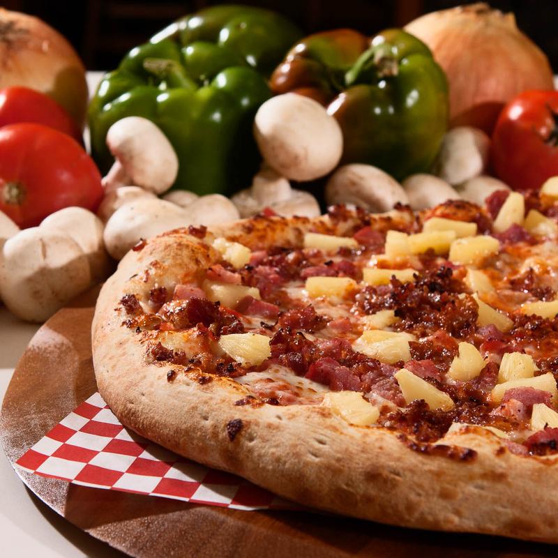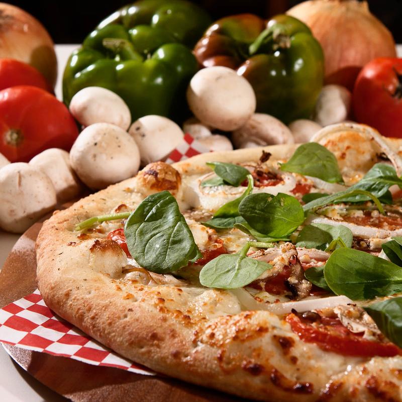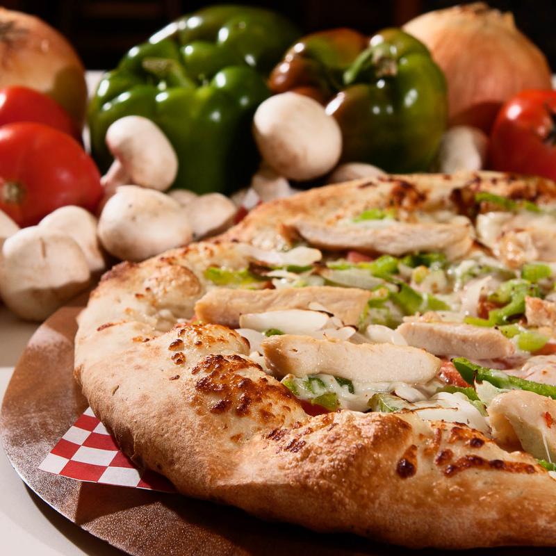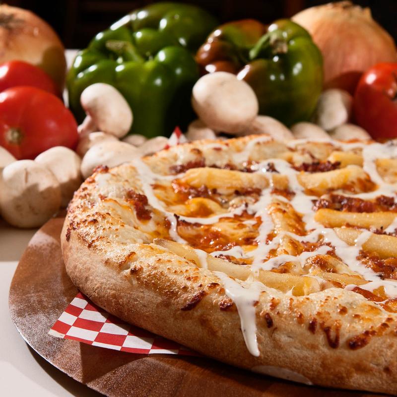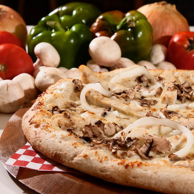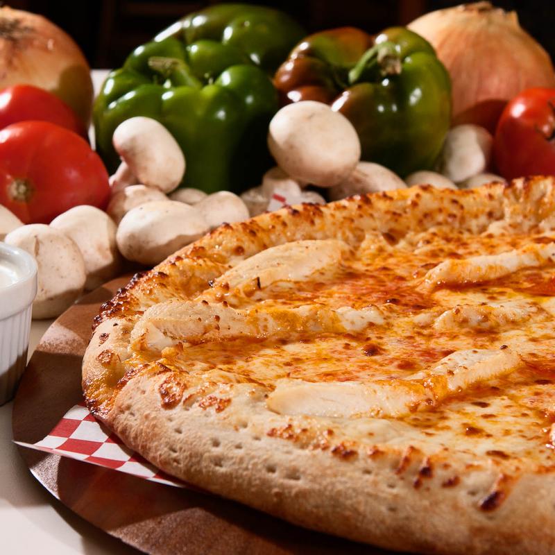 Hand crafted pizzas topped with our famous tomato basil sauce and freshly shredded mozzarella cheese. Also available in thin crust, at no additional charge.