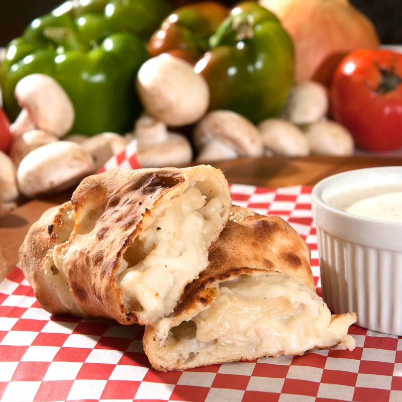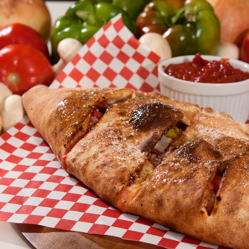 12” Hand Made Calzones stuffed with Supremo’s Tomato Basil Sauce, fresh Mozzarella and Ricotta Cheeses. Lightly brushed with Garlic White Sauce and sprinkled with Parmesan Cheese. Served with Tomato Basil Sauce on the side.